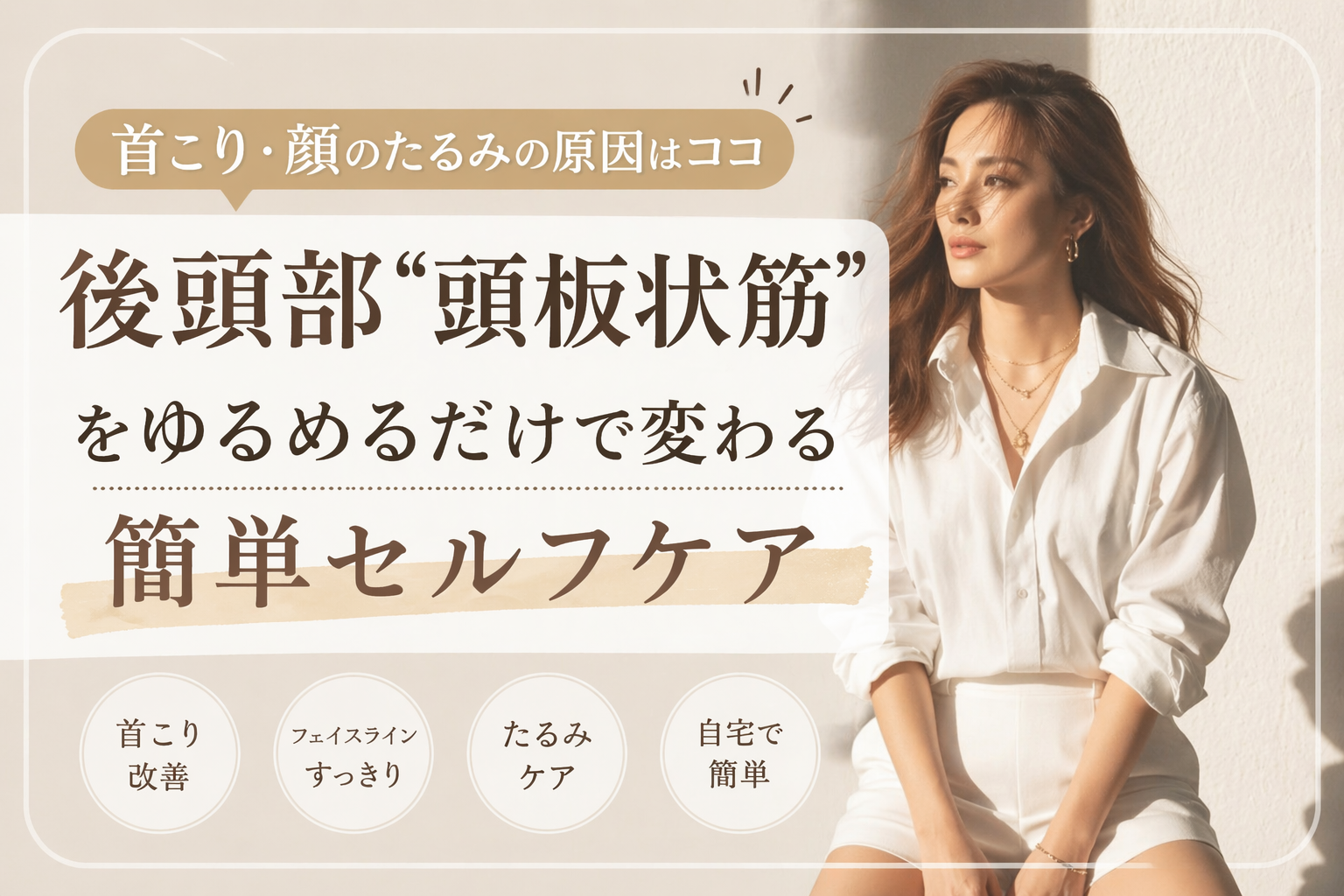 顔のたるみが気になると、つい顔のマッサージや美容液に意識が向きがちですが、実は土台となる首や後頭部を整えることがとても大切です。